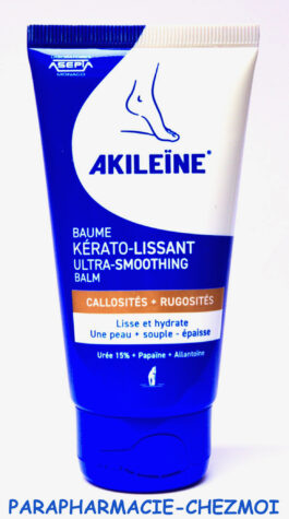 Le Baume Kérato-Lissant Akileïne® procure une action lissante des zones rêches du pied grâce à sa teneur en urée (15%) combinée à la papaïne et prévient également le risque de formation de cornes et callosités.