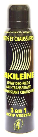Akileïne Noir Spray-Déo Anti-transpirant régule rapidement la transpiration excessive des pieds sans agressivité pour l'épiderme.
