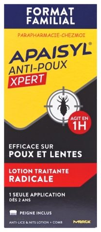 Apaisyl® Xpert Format Familial est une lotion traitante radicale qui tue 100% des poux et 100% des lentes* grâce à la formule brevetée de sa microémulsion.