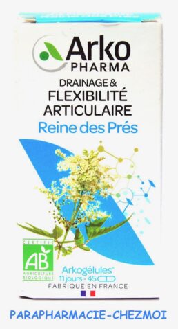 Arkogélules Reine des Prés est un complément alimentaire utilisé qui contribue au drainage et à la flexibilité des articulations.