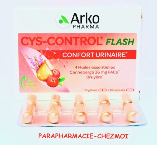 Cys-Control® Flash est un complément alimentaire à base de Bruyère, Canneberge et de 4 huiles essentielles (Niaouli, Cannelle de Ceylan, Romain, Sarriette des montagnes).
