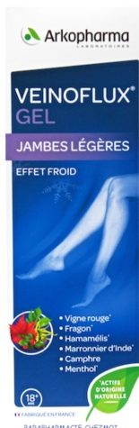 Contient des actifs d'origine naturelle : vigne rouge, fragon, hamamélis, marronier d'inde, camphre et menthol.