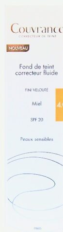 Maquillage correcteur fluide permettant de dissimuler les imperfections modérées du teint, spécifiquement formulé pour les peaux sensibles.
