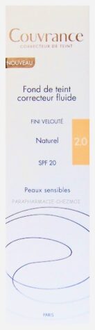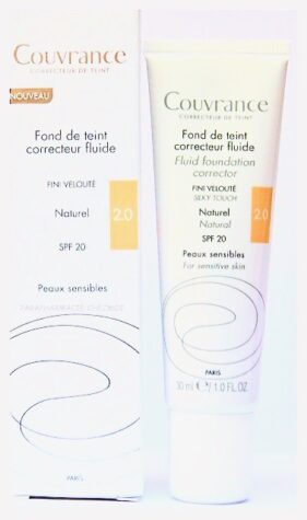 Maquillage correcteur fluide permettant de dissimuler les imperfections modérées du teint, spécifiquement formulé pour les peaux sensibles.