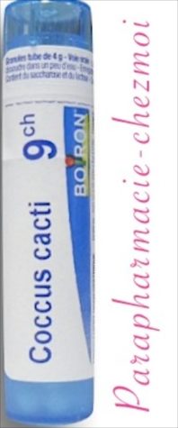 À base de saccharose et de lactose, les granules sont imprégnées de la dilution homéopathique de Coccus Cacti 9CH.