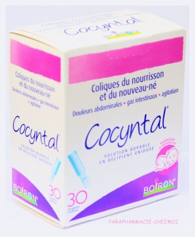 COCYNTAL®, solution buvable en récipient unidose est un médicament homéopathique traditionnellement utilisé dans le traitement des coliques du nourrisson et du nouveau-né (douleurs abdominales, gaz intestinaux, agitation).