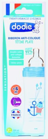 Le nouveau biberon Dodie ANTI-COLIQUE inclut une valve brevetée anti-colique, anti-régurgitation et anti-aérophagie.De plus il est ergonomique et possède un système anti-fuite.