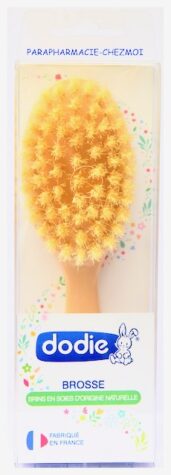 Dodie Brosse à Cheveux Bébé est une brosse spécialement conçue pour coiffer en douceur les cheveux fragiles de bébé grâce à ses brins souples et doux en soies d'origine naturelle qui les respecte.