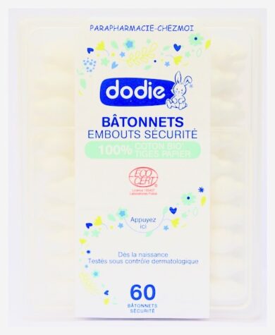 Dodie Bâtonnets Embouts Sécurité 100%  sont des coton-tiges avec embouts sécurité à utiliser dès la naissance.