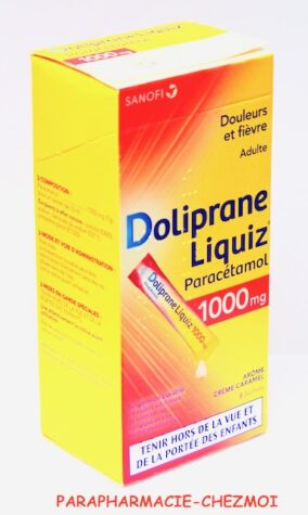 DOLIPRANE LIQUIZ 1000mg est un médicament indiqué dans le traitement de la fièvre et/ou des douleurs telles que les maux de tête, douleurs dentaires, règles douloureuses, états grippaux, courbatures.