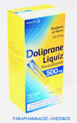 DOLIPRANE LIQUIZ 500mg est un médicament indiqué dans le traitement de la fièvre et/ou des douleurs telles que les maux de tête, douleurs dentaires, règles douloureuses, états grippaux, courbatures.