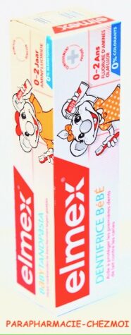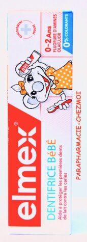 Le dentifrice bébé Elmex contient du fluorure d'amines Olafluor permettant de réduire la formation de la plaque dentaire et de prévenir l'apparition des caries.