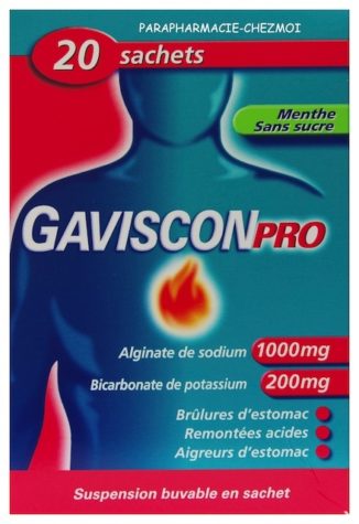 Substances actives : Alginate de sodium 1000,0 mg, bicarbonate de sodium 200,0 mg pour un sachet de 10 ml.