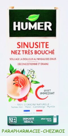 HUMER SINUSITE NEZ TRES BOUCHÉ est un produit efficace et d’origine naturelle qui traitre les sinusites aigues ou chroniques, ainsi que les fortes congestions nasales en cas de rhume.