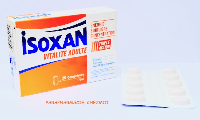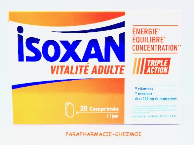 ISOXAN VITALITÉ ADULTE est un complément alimentaire comprenant 9 vitamines, 6 minéraux, 7 anti-oxydants contribuant à réduire la fatigue et le surmenage de l'adulte.