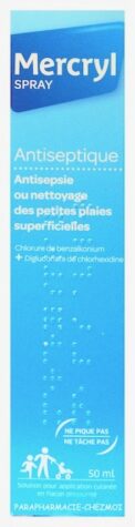 Mercryl Spray est un médicament , il est préconisé dans l'antisepsie des petites plaies superficielles et peu étendues : égratignures, éraflures, petites coupures, piqûres...