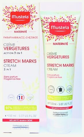 Spécifiquement formulé pour prévenir l'apparition des vergetures durant la maternité ce soin actions 3 en 1 permet :