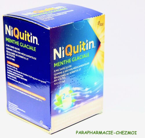 NIQUITIN GOMMES À MÂCHER 2MG SANS SUCRE GOÛT MENTHE GLACIALE :