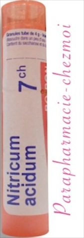 NITRICUM ACIDUM 7CH Tube Granules est un médicament homéopathique utilisé en dermatologie, en gastro-entérologie, en gynécologie et en urologie.
