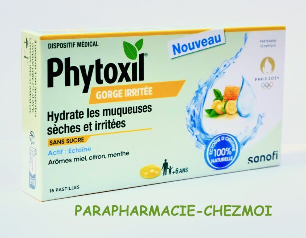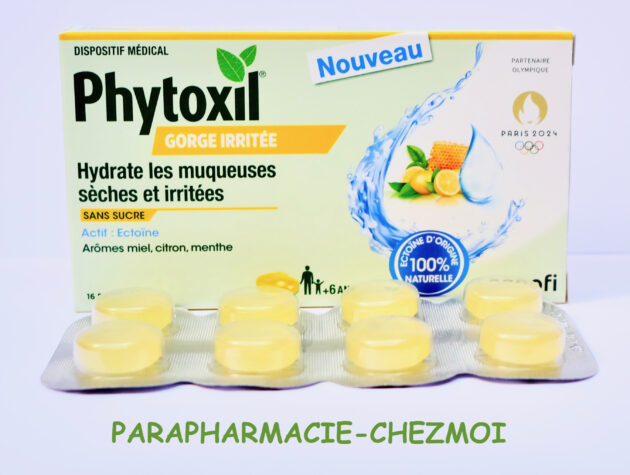 PHYTOXIL Gorge irritées pastilles est un dispositif médical pour le traitement et la prévention des symptômes communs du rhume, de la sécheresse de la bouche et de la gorge et de l'enrouement.
