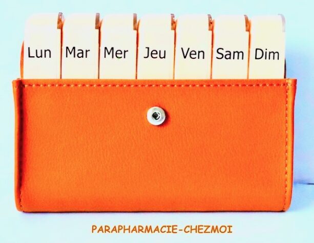 *Pratique : le jour de la semaine, inscrit en gros caractères, apparaît clairement dès l’ouverture du pilulier.