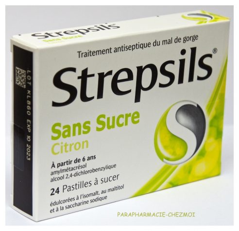 Principes actifs : 1,2mg alcool dichlorobenzylique et 0,6mg d’amylmétacresol pour une pastille.