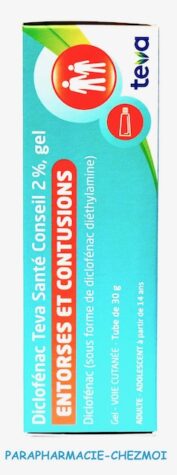 DICLOFENAC TEVA SANTE CONSEIL 2% est un médicament anti-inflammatoire et antalgique (il calme la douleur),utilisé pour le traitement local symptomatique de courte durée de la douleur légère à modérée liée aux entorses, foulures et contusions aiguës après un traumatisme brutal.