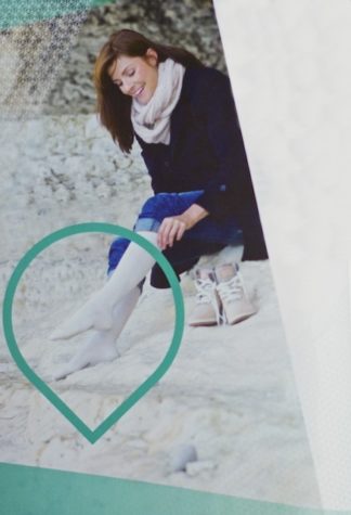 *Retourner sans tirer la chaussette et le dérouler sur la cheville et le mollet (jusque sous le genou) en remontant petit à petit par des mouvements variés de gauche à droite, sans tirer directement vers le haut de la chaussette.