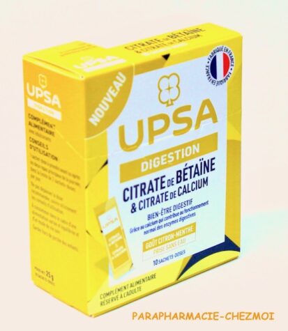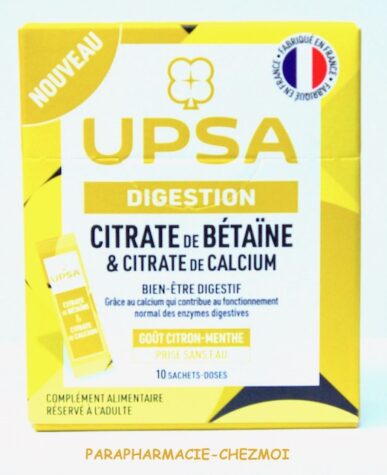 UPSA CITRATE DE BÉTAÏNE ET CITRATE DE CALCIUM est un complément alimentaire qui contribue au fonctionnement normal et au bien-être digestif.