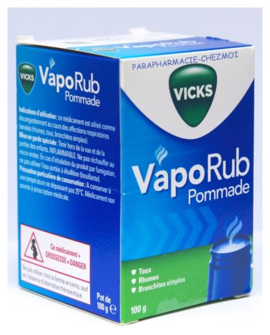 Principes actifs : camphre, huile essentielle de térébenthine, lévomenthol, huile essentielle d'eucalyptus, thymol.